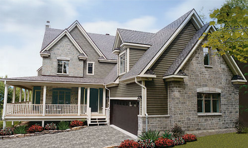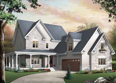 Stone accents and a stunning wrap around porch enhance the exterior of this two storey country home. Spacious, bright and ready for a busy life, this elegant farmhouse brings a classic flavor to a modern home. Upon entry the study is to the left and overlooks the front porch. The family room is ideal for casual relaxation or formal affairs. The kitchen opens to a wrap around porch and is conveniently located adjacent to the dining room. Upstairs 4 bedrooms cluster around a central hall and the large main bath includes a double sink for family ease. The master suite delights with a unique curved-wall walk in closet. A bonus in this lovely country design is the finished 520 sq ft room with separate entrance above the garage ideal for a media room, nannys suite or expanding family.